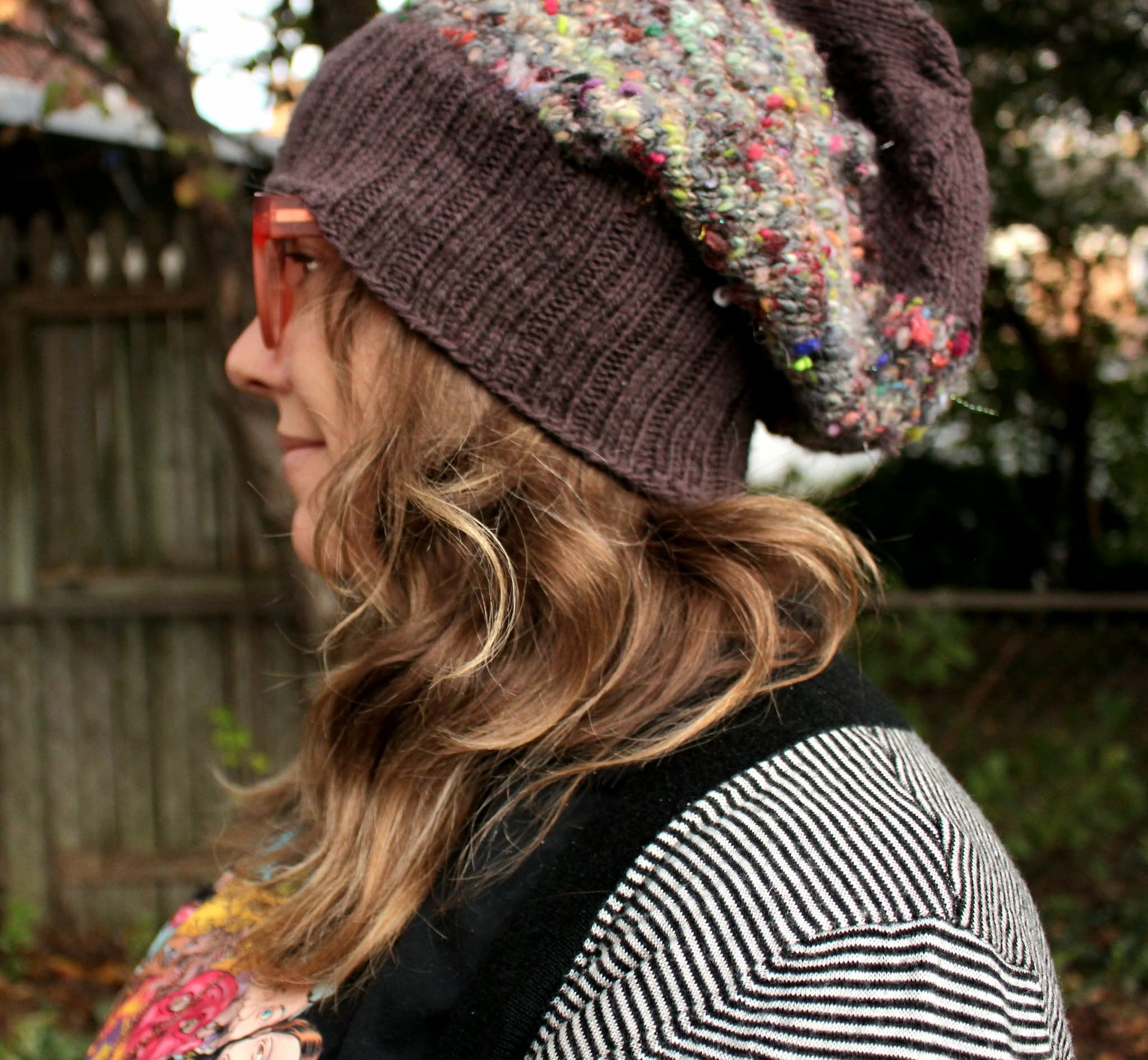 I started out working in fibers and have since fine-tuned my niche within that medium. These days, I focus on deconstructing materials with my wool picker and drum carder — mostly old sweaters, bits of wool, virgin hair extensions, and always a touch of sparkle. Drink in the colors and textures, and feel completely warm from the inside out in one of these hats. Nothing feels more like love than a hand-knit.
